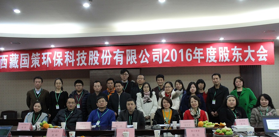 西藏國策環(huán)??萍脊煞萦邢薰?016年度股東大會于2月9日在成都召開,股東大會由董事會秘書楊偉強主持。董事長兼總經(jīng)理陳鴻、副董事長范津濤、副總經(jīng)理幸川、財務(wù)總監(jiān)趙永花、證券部經(jīng)理張麗、監(jiān)事會主席蘇昌軍等公司董事、監(jiān)事及核心成員出席本次會議。