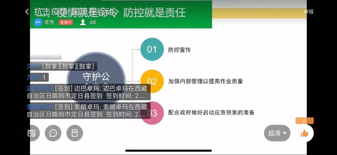 以“抗擊疫情,國(guó)策環(huán)保在行動(dòng)”為主題,公司防疫小組定期對(duì)各分公司管理人員展開了線上的直播宣傳,對(duì)疫情防護(hù)、管理進(jìn)行指揮安排。對(duì)奮戰(zhàn)一線的管理人員、工作人員表示贊揚(yáng)與鼓勵(lì)。在疫情攻堅(jiān)戰(zhàn)中,公司所有人員包括管理人員萬眾一心在特殊時(shí)期堅(jiān)守崗位,公司時(shí)刻與員工一同戰(zhàn)斗!