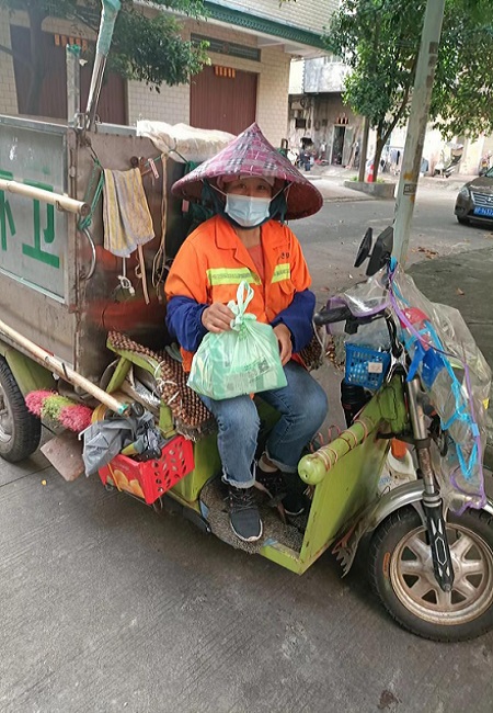 隨后,工作人員向現(xiàn)場520余名環(huán)衛(wèi)工人及園林工人挨個發(fā)放了藿香正氣水、風油精、廣東涼茶顆粒、復方板藍根顆粒等防暑降溫用品。國策一線環(huán)衛(wèi)工人們接到派發(fā)的消暑用品時紛紛露出了開心的笑容:“大熱天有公司發(fā)放的消暑用品,解暑清涼,很開心。”