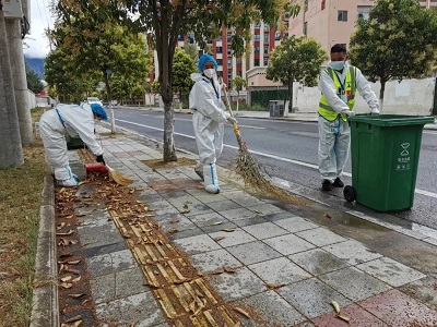 (國策環(huán)保林芝分公司工作人員進行城區(qū)垃圾清掃)